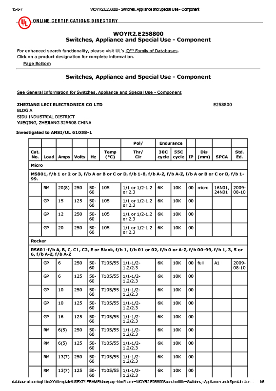 RS rocker switch series, Kor current overload protector series, Ms microswitch series, KFC touch switch series, DB appliance socket series